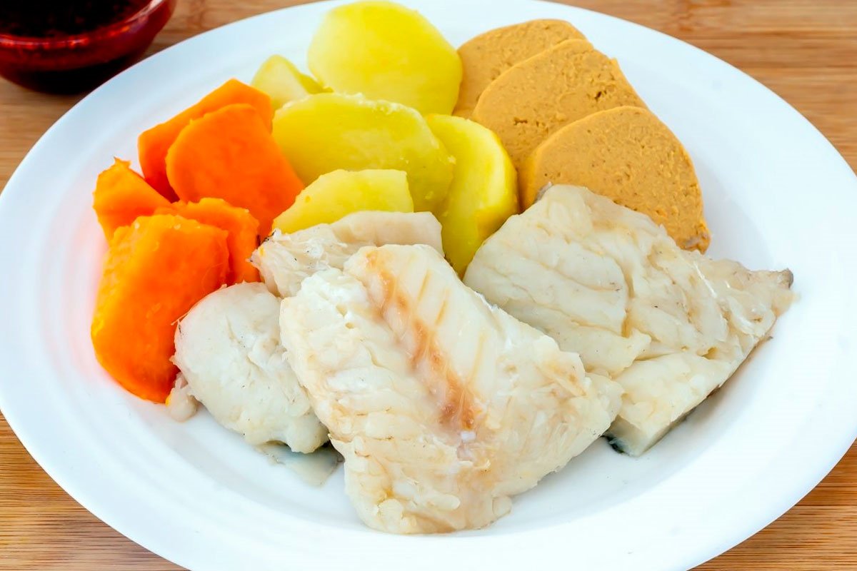 - Once ready, the fish is served in pieces, accompanied by potatoes, sweet potato and a good red mojo sauce.